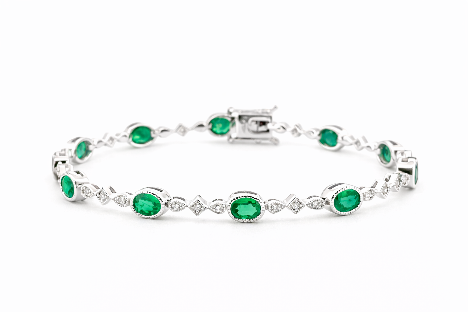 14K W BRACELET 33RD 0.27CT 12EM 5.10CT BRACELET WITH DIAMONDS & EMERALDS DIA 0.27CT EME 5.10CT
