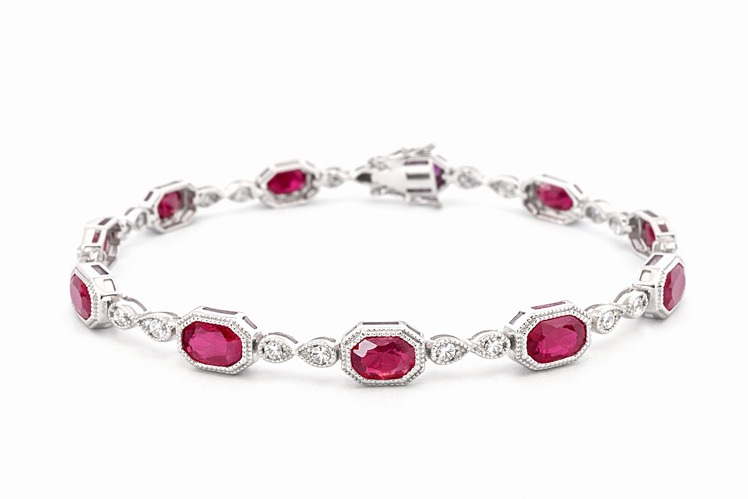 14K W BRACELET 22RD 0.31CT 11RUBY 7.26CTBRACELET WITH DIAMONDS & RUBIES DIA 0.31CT RUB 7.26CT