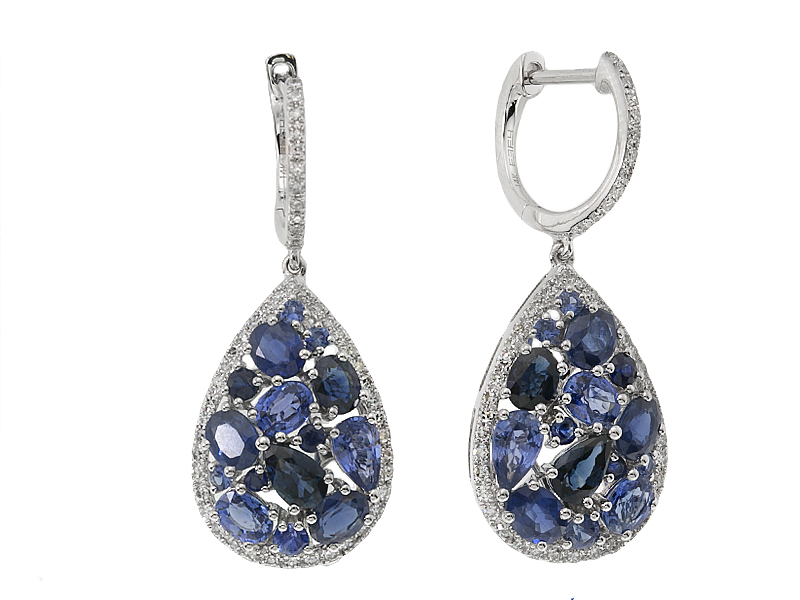 14K WHITE GOLD DIAMOND,NATURAL CEYLON SAPPHIRE,NATURAL SAPPHIRE EARRINGS DIA 0.39CT SAP 3.92CT