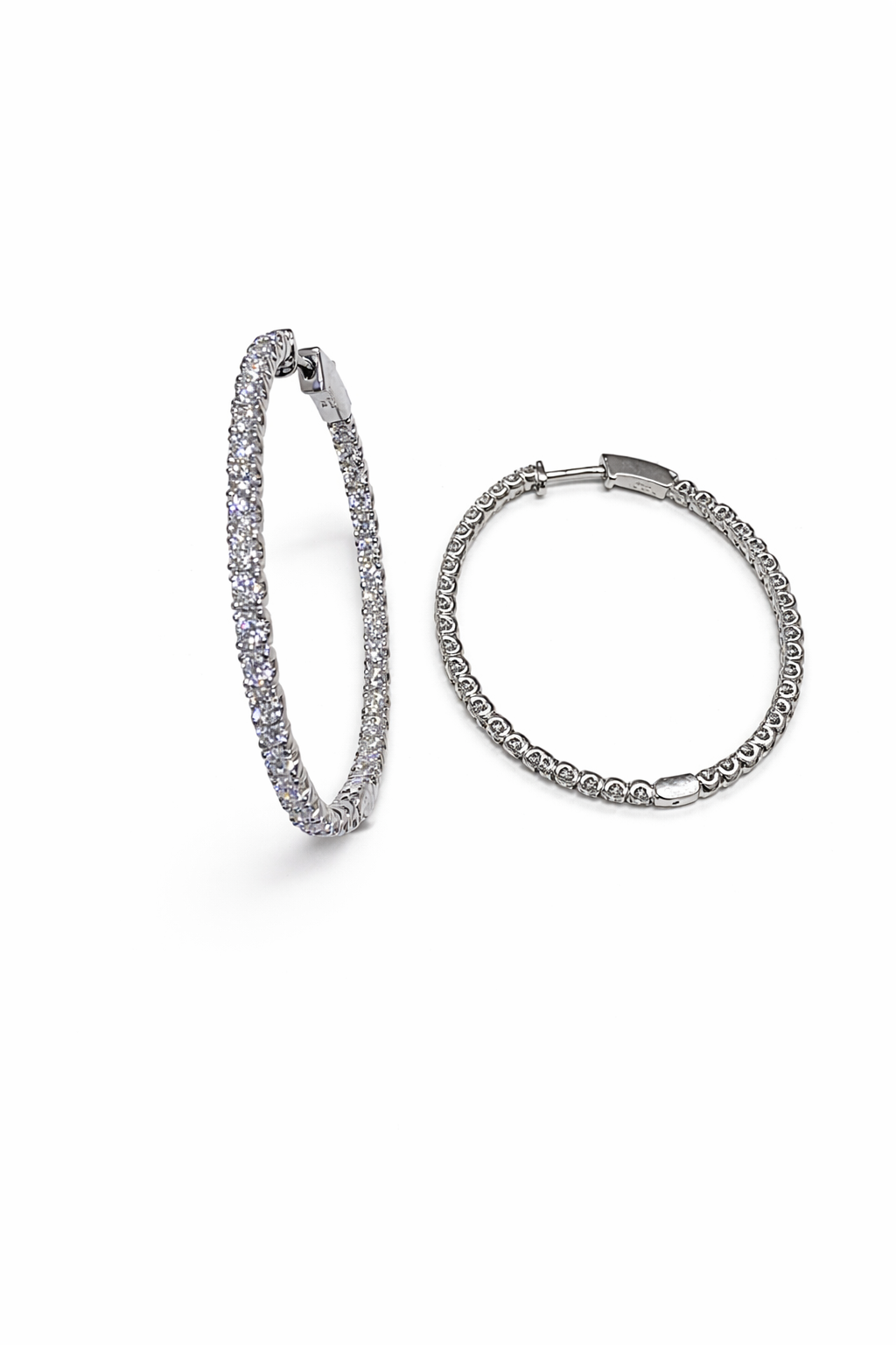 14K W EARRINGS 76RD 2.44CT OVAL INTERNAL DIAMETER 1.25 INCH (1.90MM) USING Z72 LOT22 + 16 = 38 x 2 = 76 RDS DIA 2.44CT