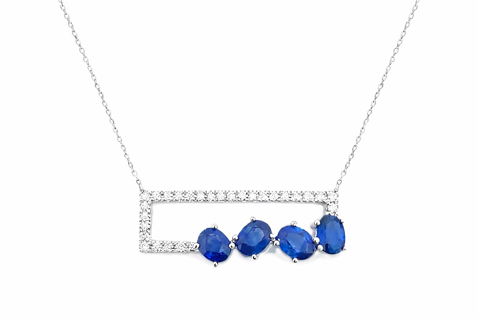 14K W NECKLACE 24RD 0.12CT 4SP 1.07CTNECKLACE SET WITH DIAMONDS & SAPPHIRES DIA 0.12CT SAP 1.07CT