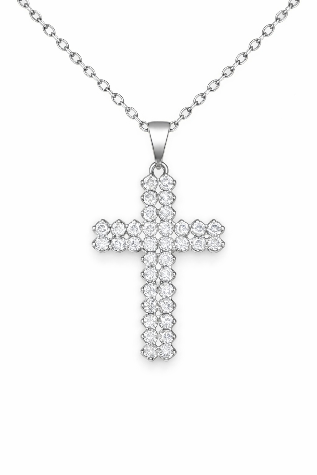 14K W CROSS PENDANT 36RD DIA 0.35CT PENDANT SET WITH DIAMONDS