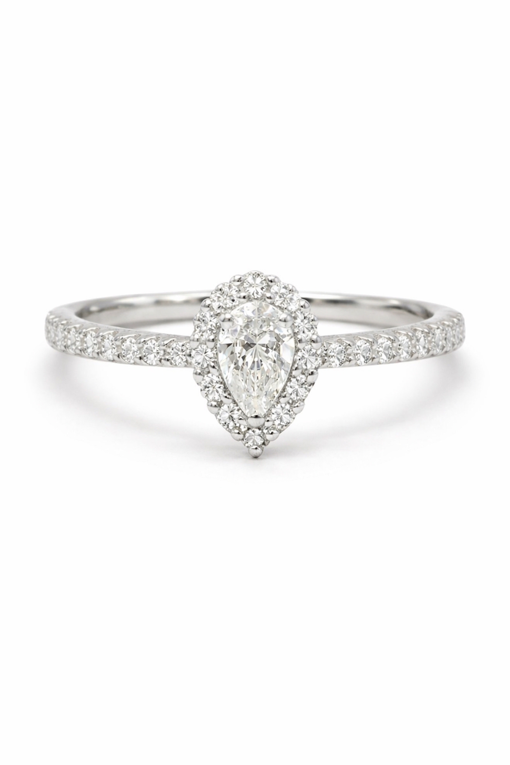 14K WG 5/8CTW-DIA ANA M 1/3CT- CPEAR ENGAGEMENT SINGLE HALO