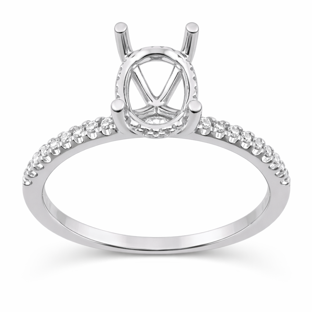 14K WG RING 36RD DIA 0.16CT CENTER 4 PRONG HEAD FOR OVAL 8.0 X 6.0MM. 14RDS BAR HEAD, 22RDS SHANK