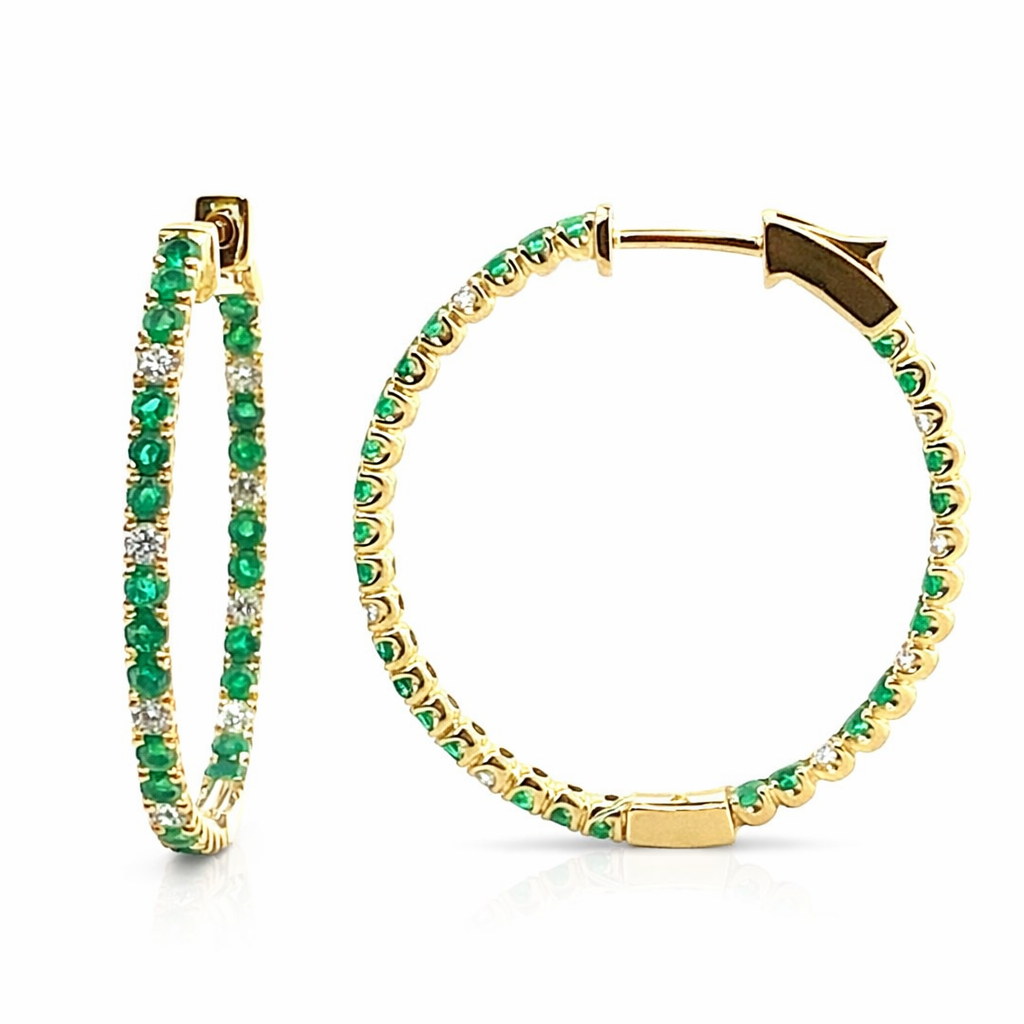 EMERALD & DIAMOND HOOP EARRINGS