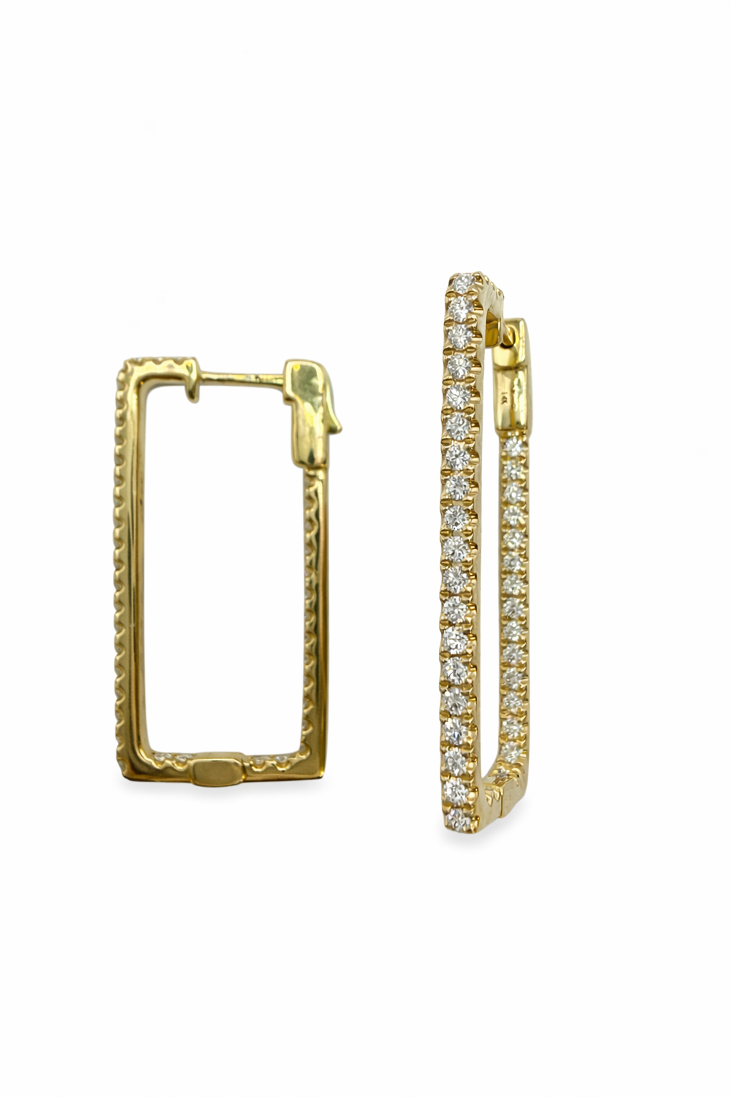 14K Y EARRINGS 82RD DIA 0.88CT HEIGHT 32mm (1.25 INCH) WIDTH 15mm (0.60 INCH) USING 1.35mm DIAMONDS ONLY.
