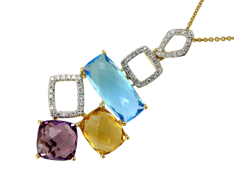 14K YELLOW GOLD DIAMOND AMETHYST BLUE TOPAZ CITRINE PENDANT HPYCH140DM DIA 0.22CT GW 10.85CT
