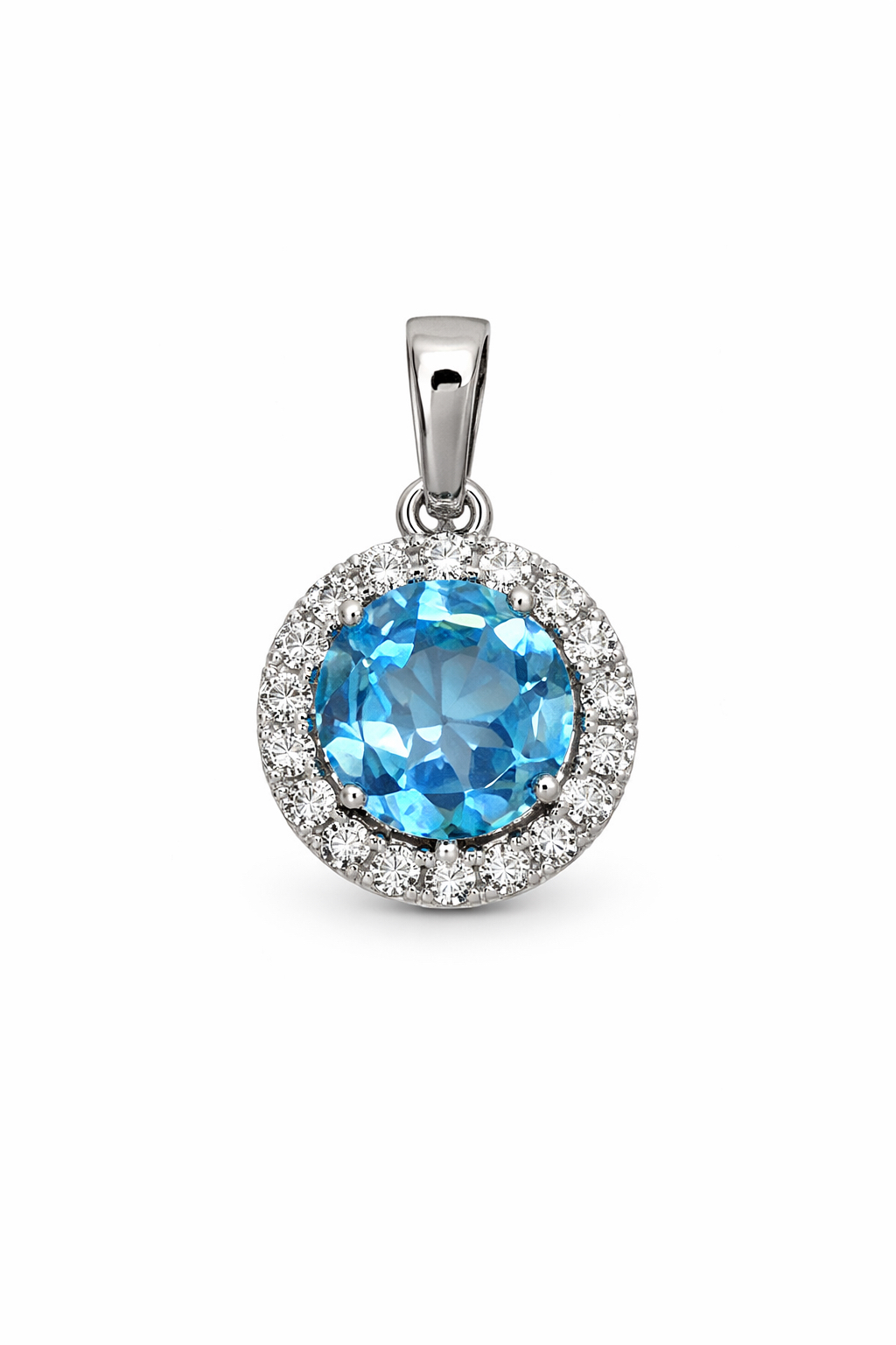 18K WG 1/6CTW DIA ANA M E 7MM BLUE TOPAZ FASHION PENDANT 204577 GND599