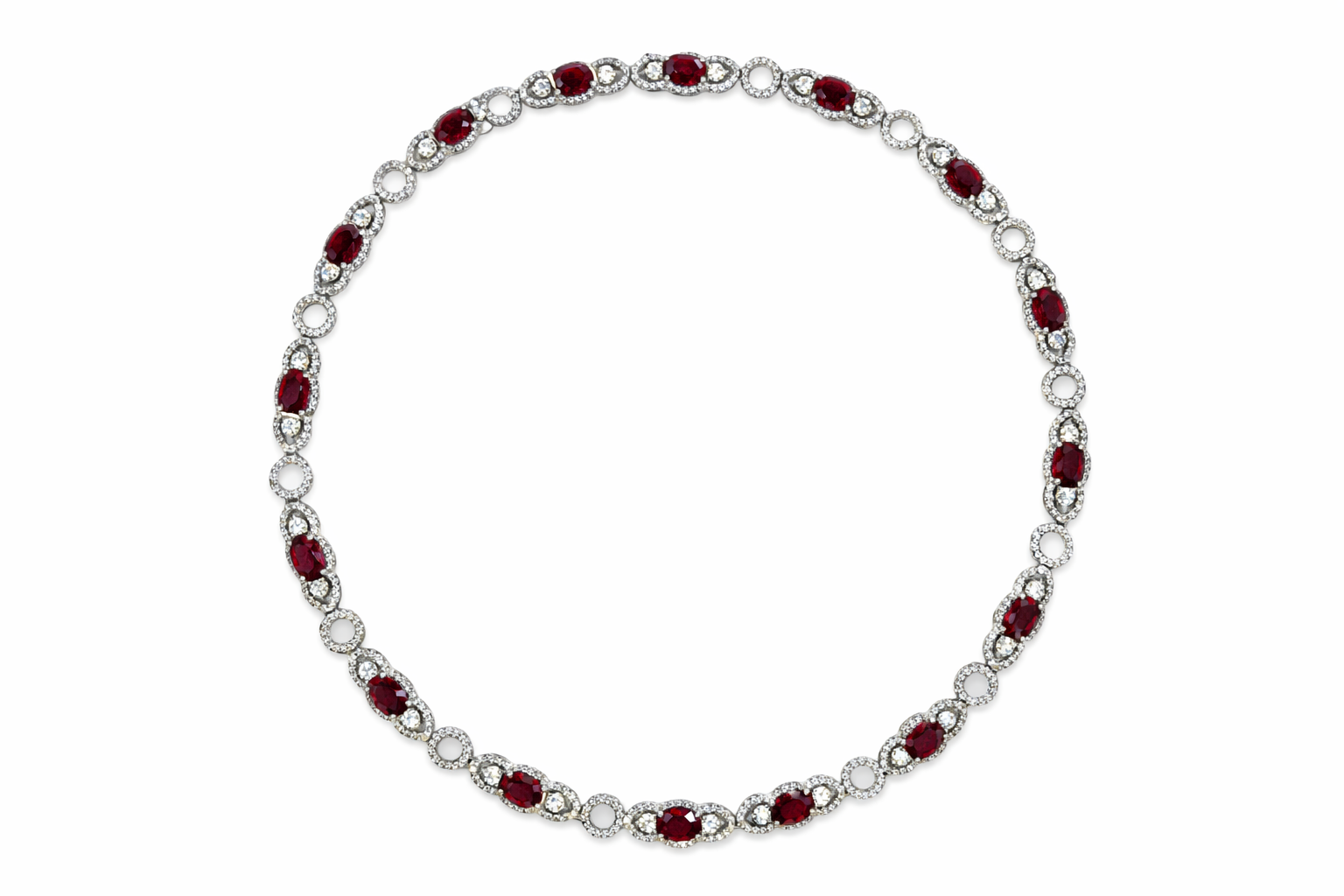 18K NECKLACE WG RUBY OVAL RUB 18PCS = 16.20CTS DIA 1PCS 8.6CTS