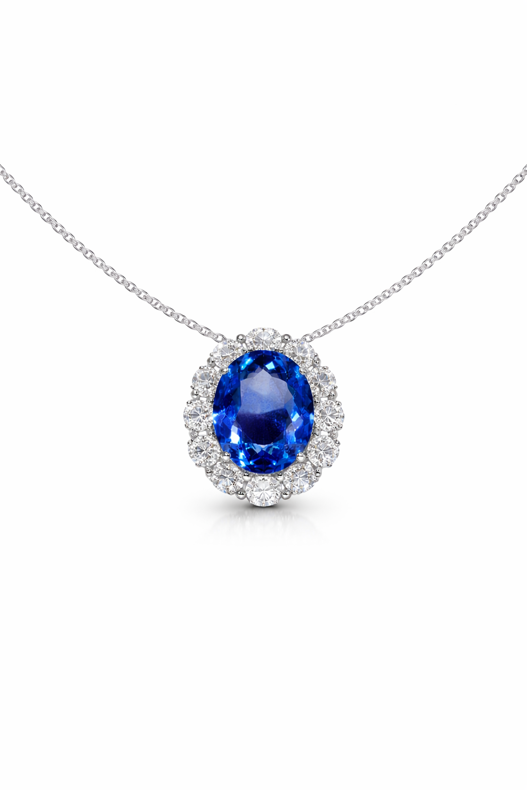 18K WG NECKLACE DIA 1.36CT 5.26CT SAP 11X9MM VIVID BLUE OVAL SAP 1PC = 5.26CT DIA 12PC = 1.36CT CERT CDC 2511772