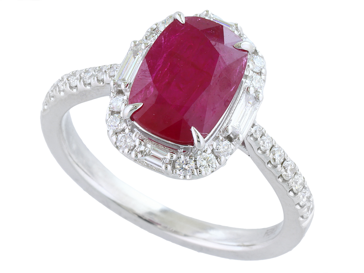 18K WHITE GOLD, NATURAL RUBY RING DIA 0.4CT RUB 2.27CT