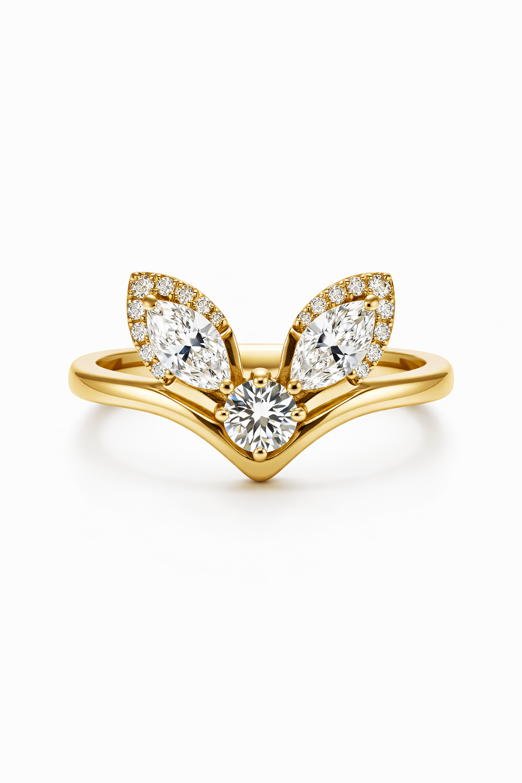 18K YG 3/8CTW VSF RD 3/4CTW VSF MQ RING