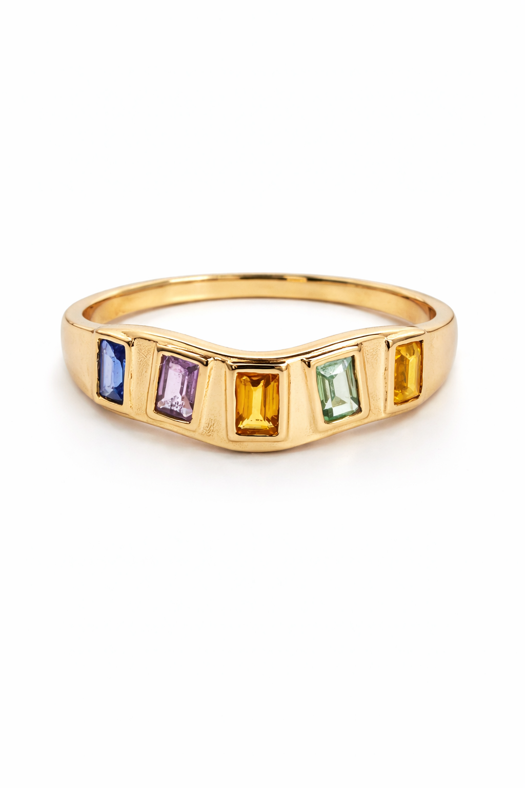 18K YG RAINBOW WAVE RING BAND CERT QD011TXS