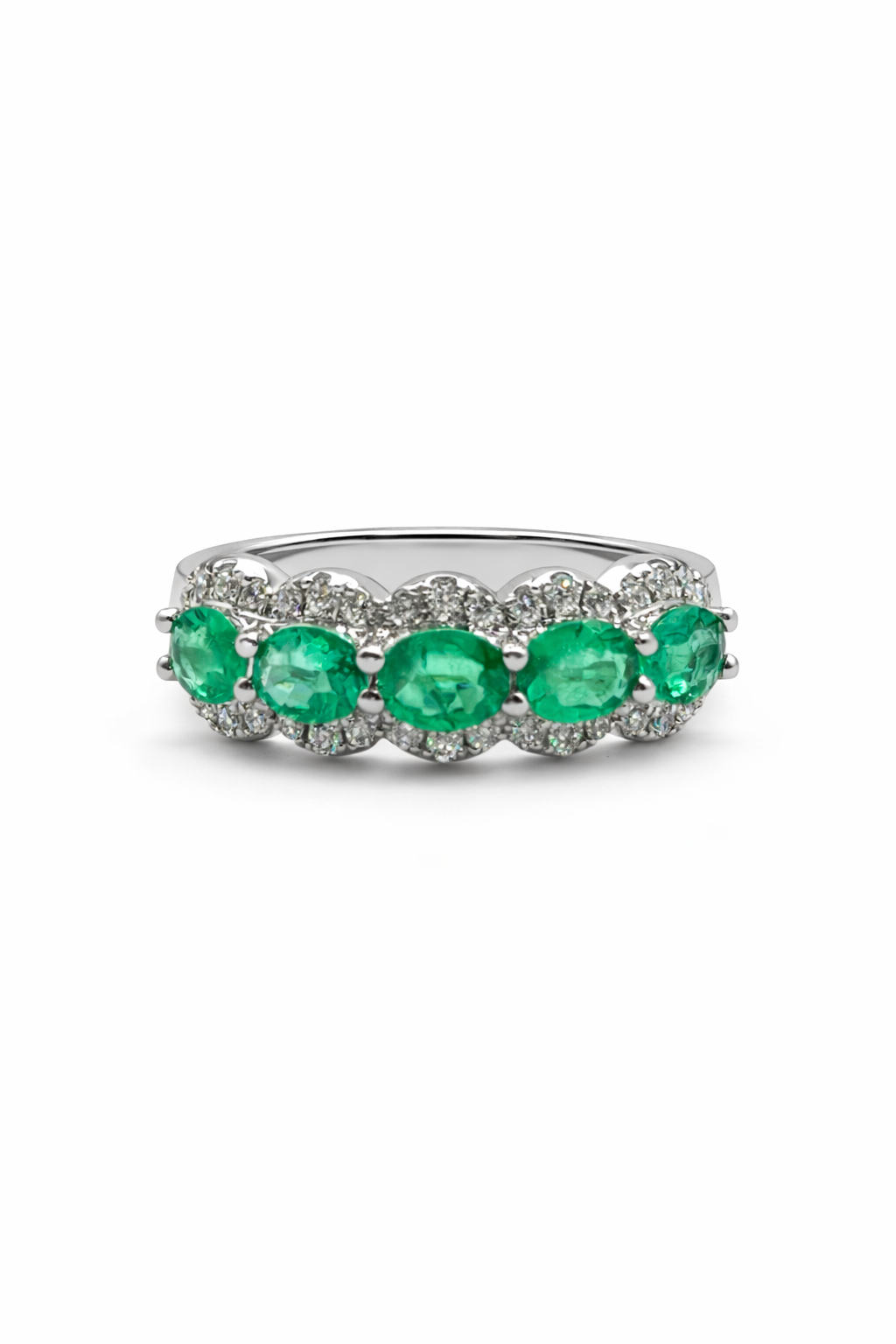 BAND 14KW EMERALD OVAL 4x3 mm EME: 5pcs = 0.98cts DIA: 36pcs = 0.27cts