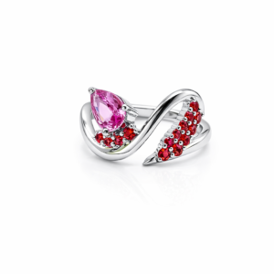 18KT WG 3/4CTW PE PINK SAP 3/8CTW ORG SAP SWAN RING